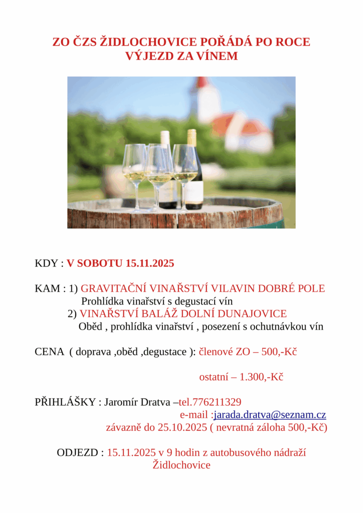 odjezd: 15.11.2025 v 9 hodin z autobusového nádraží Židlochovice